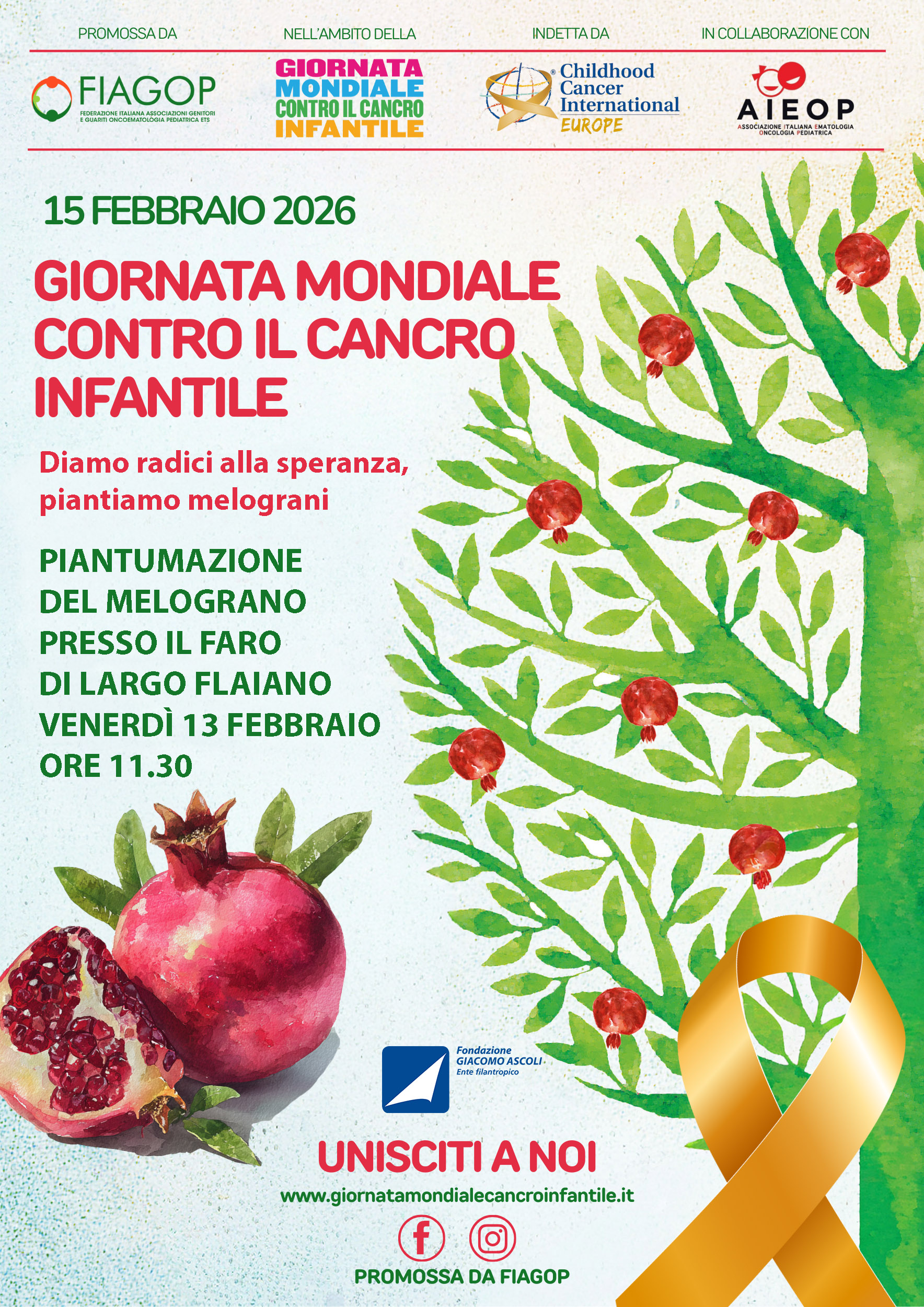 Anche quest’anno, venerdì 13 febbraio celebreremo la “Giornata Mondiale contro il Cancro Infantile”, istituita dall’Organizzazione Mondiale della Sanità e promossa a livello internazionale da Childhood Cancer International e da Fiagop.